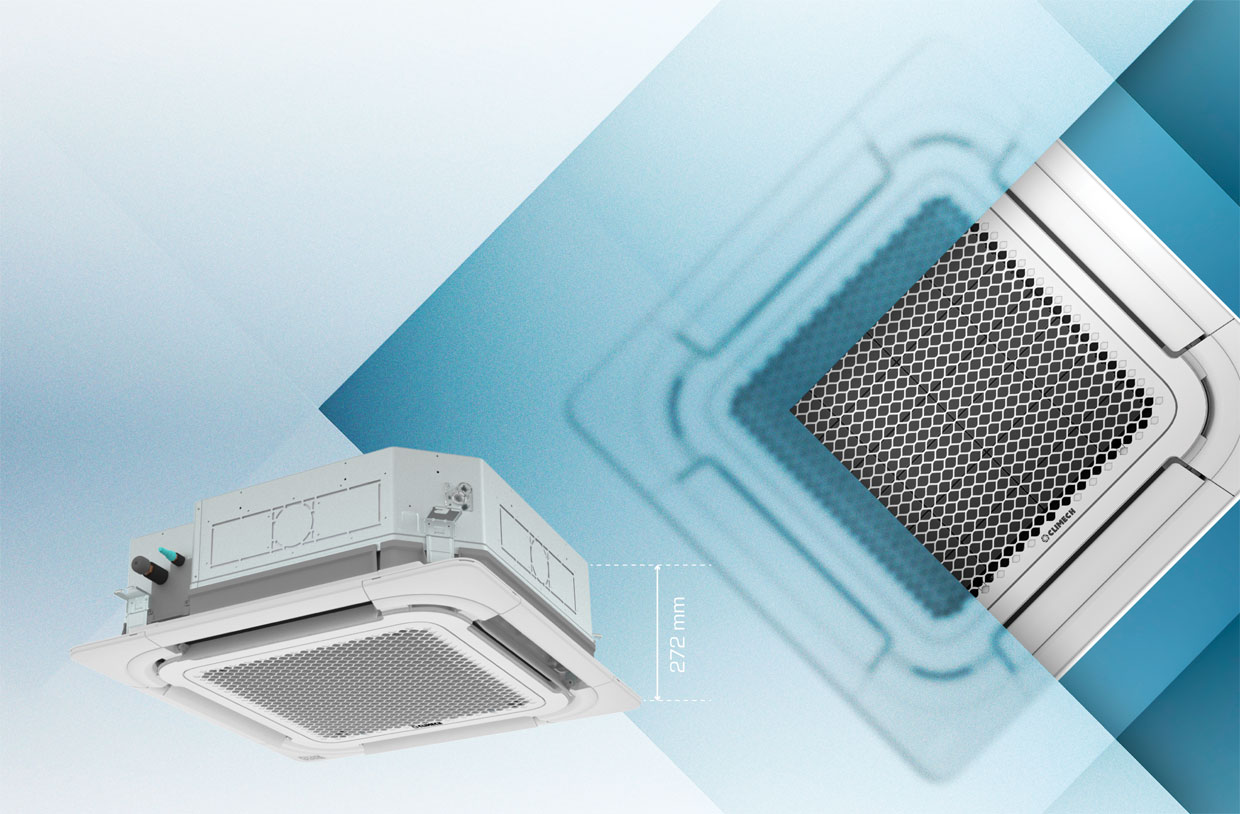 Yalnızca 272 mm gövde yüksekliğine sahip ultra ince tasarım, düşük tavan uygulamaları için ideal bir çözüm sunar. Kompakt yapısı sayesinde montaj alanında maksimum esneklik sağlarken, aynı zamanda estetik bütünlüğü bozmadan iç mekâna kusursuz uyum gösterir. Bu seri, sınıfının en ince ve en yüksek verimlilik sunan ürün grubu olarak öne çıkar.